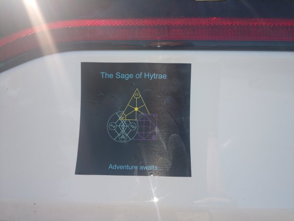 The Sage of Hytrae bumper stickers are in. I will be selling these at my booth for $1, or giving them away with book sales. Headed into town now to setup.